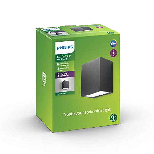 Specificaties: Philips Flagstone Buitenwandlamp – Zwart – 3 W – Warmwit licht – Spatwaterdicht – Geïntegreerde LED-lamp