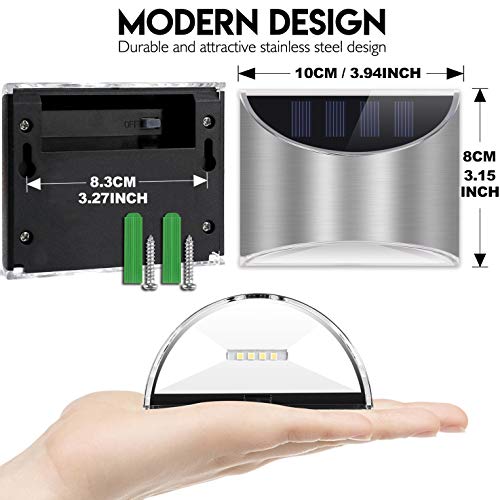 【Ontwerp voor waterdicht】 Solar Lights Outdoor Eenvoudig en modern ontwerpconcept. Gemaakt van roestvrij staal en kunststof zorgen voor een lange levensduur en IP5 is afgedicht tegen regen en sneeuw. Een geweldige zonne-energie verlichting voor buitendeur muur tuin yark pad straat etc.