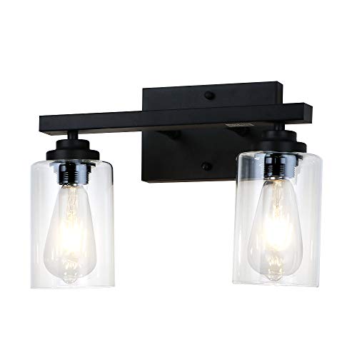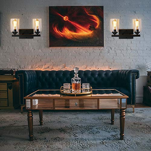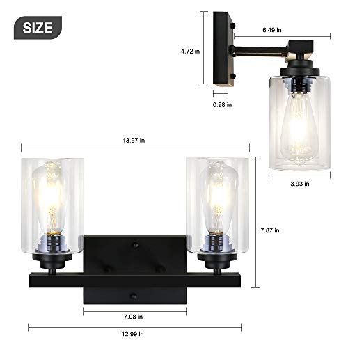 Specificaties: LynPon Wandlampen 2-Lichts Glazen Wandlamp Zwart Vintage Industriële Badkamer Vanity Wandkandelaar Binnenverlichting